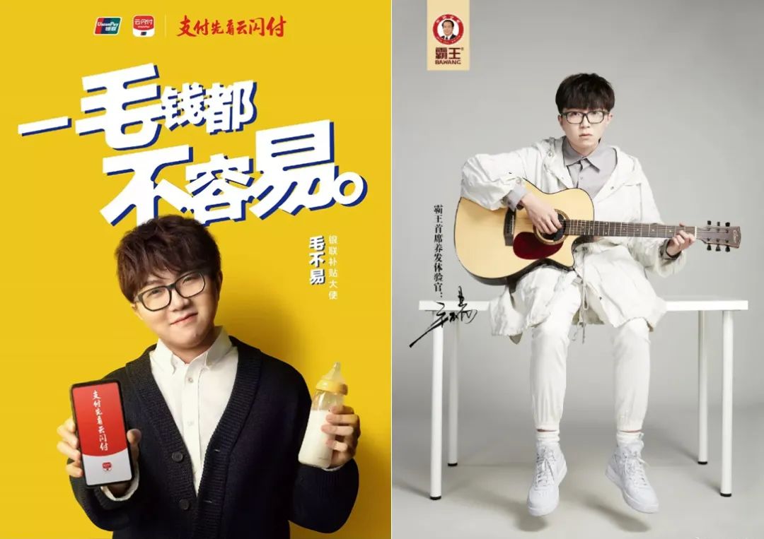 再比如,在毛不易与银联、霸王洗发水的合作中,毛不易的名字与银联强调的“一毛钱都不容易”的省钱理念,让用户在听到这个梗的瞬间,就能理解银联所倡导的理性消费观念;同时,毛不易又与霸王洗发水突出的“每一根毛发都不容易”概念暗合,也精准地戳中了现代人脱发问题的痛点,使其产品的功能属性更加深入人心。从而,让毛不易成功揽下了这两个品牌的代言。