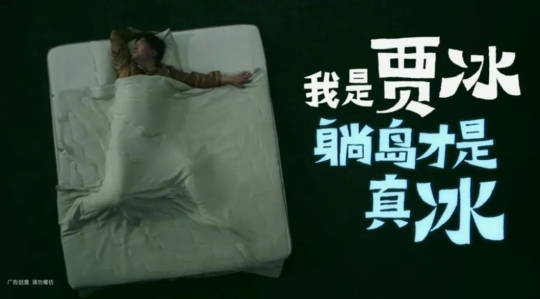 还有就是,不久之前,贾冰代言的躺岛广告中,为了突出产品的清凉,文案中有一句是“我是贾(假)冰,躺岛才是真冰”,使其与产品的特质产生强关联,抽象的表达,却让产品功能的联想更加具象化了。