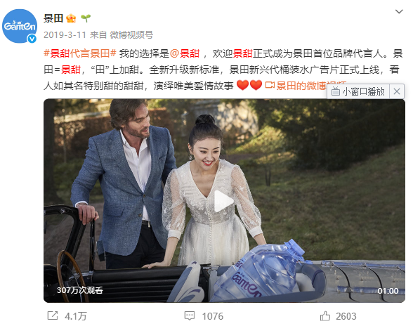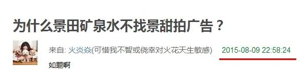 如很早之前,就有网友在问:为什么景田矿泉水不找景甜拍广告?随着用户对此问题的围观,热度到了一定的高度时,矿泉水品牌景田与艺人景甜也终于合体了,让“景甜代言景田”与景田水的“田上加甜”等梗,成为了品牌传播点。