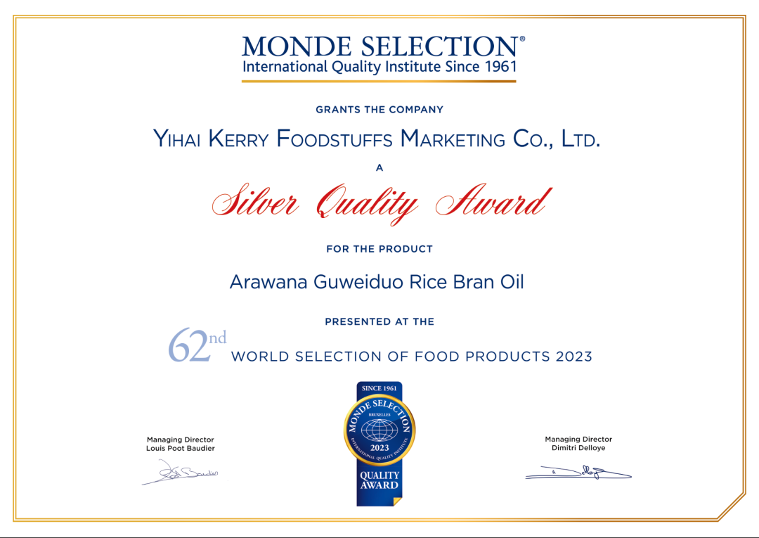 日本2016国际稻米油品质大奖、比利时2023 Superior Taste Award国际美味评鉴三星奖章和2023比利时Monde Selection世界品质鉴赏大会银奖等多项国际荣誉……这些含金量十足的奖项也足以证明谷维多在产品力上的底气。