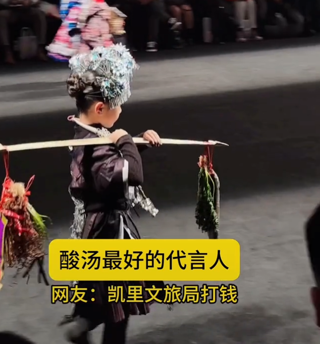 今年3月22日,45名贵州孩子跨越1600多公里从贵州来到北京,身着民族服饰走上中国国际时装周T台。凯里萌娃身着非遗苗绣挑着酸汤鱼、5岁小女孩被70岁的爷爷扛在肩头走秀……“村T少年”惊艳了时装周,也刷屏全网。