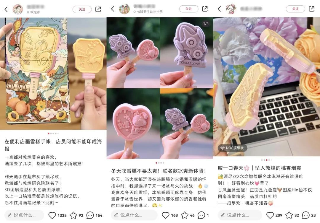 与敦煌、故宫等博物馆的合作,则侧重挖掘文化场景的深层价值。敦煌九色鹿、故宫文物……这些都不是冷冰冰的图案,它们是自带庞大粉丝基础和深厚情感联结的超级IP。须尽欢通过联名,巧妙绑定了IP的文化价值与情感共鸣。一支冰淇淋,承载了文化传承、美学认同等多重情绪。消费者买的不仅是冰淇淋,更是一种情感体验和文化身份的认同,品牌溢价空间由此打开。
