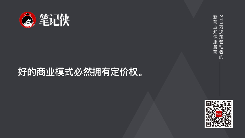 好的商业模式必然拥有定价权。遇到一个好的商业模式,看似需要极大的运气,但运气背后往往有着深厚的企业文化支撑。