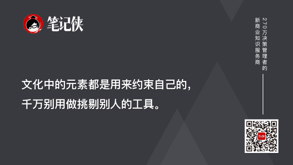 此外,文化中的元素都是用来约束自己的,千万别用做挑剔别人的工具。