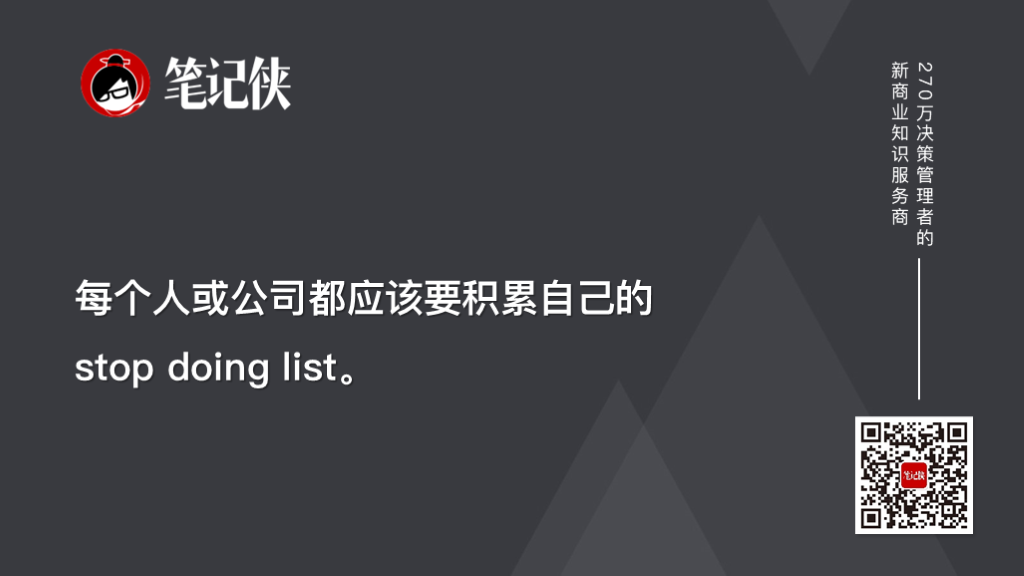 所以,每个人或公司都应该要积累自己的stop doing list。