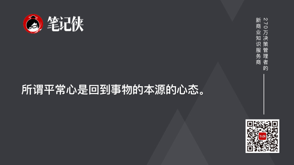 我理解的平常心就是回到事物的本源的心态,平常人很难有平常心,所以马云说其实平常心就是不平常心。