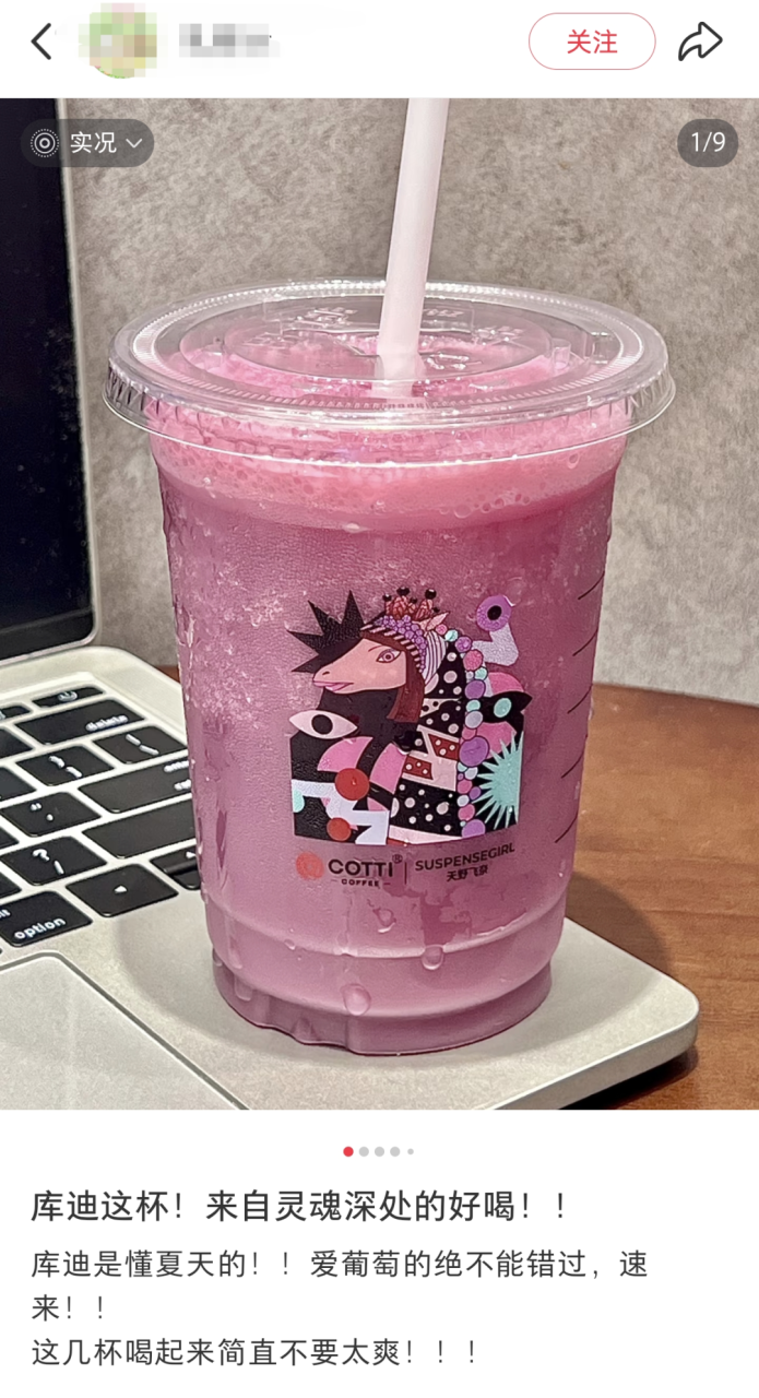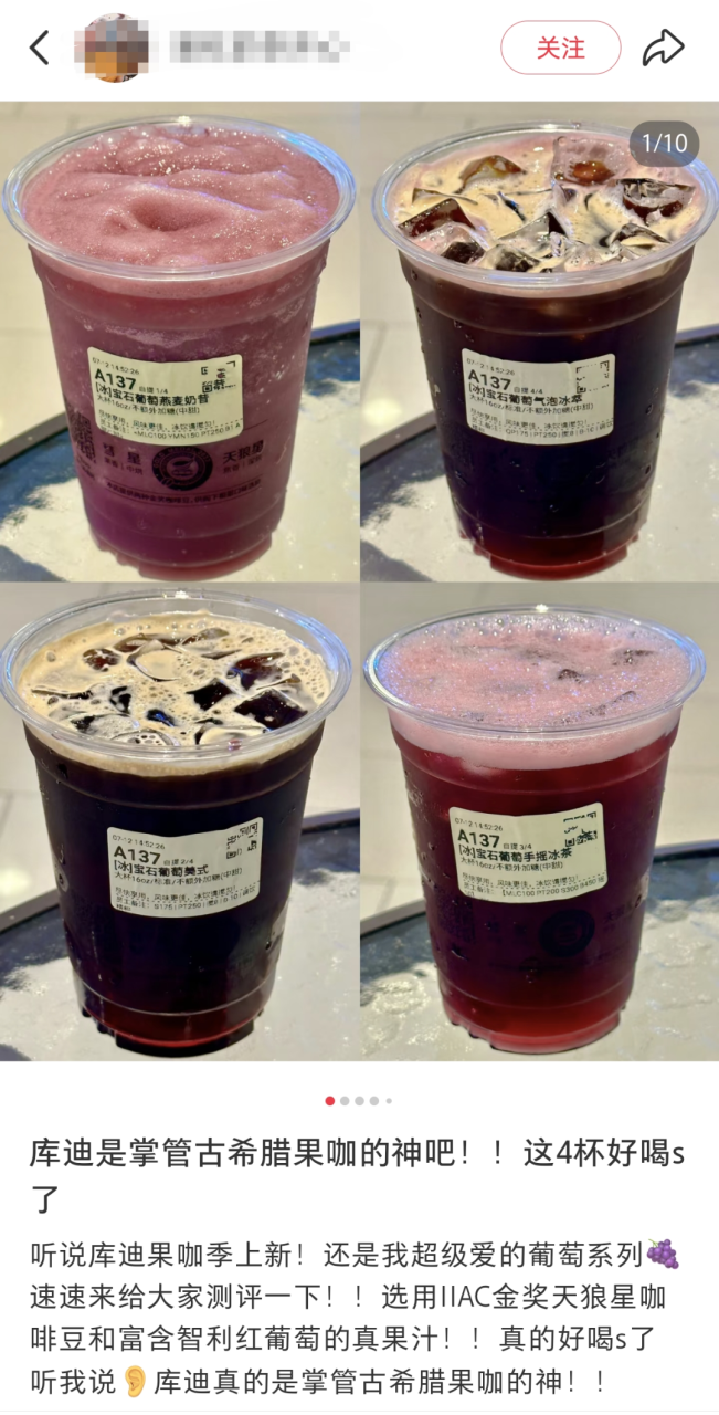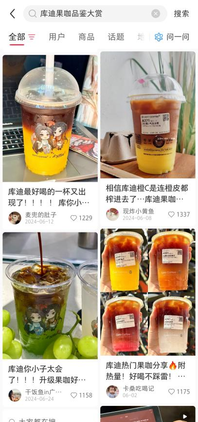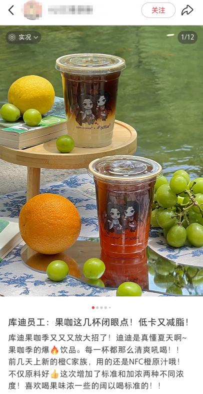 而从2024年入夏至今,库迪咖啡的果咖系列累计销量已经突破3亿杯,在小红书上,#库迪果咖##库迪果咖品鉴大赏#等话题也是相当热闹,从橙C美式、柚见美式、宝石葡萄美式,到今夏新出的蜂蜜白柚、柠萃美式、苹果美式……几乎每种口味都有一大拨“死忠”粉,有网友甚至喊话品牌“只要不下架,就敢一直喝”。