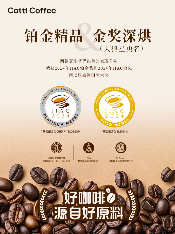 从公开的资料来看,库迪一直坚持精选埃塞俄比亚、哥伦比亚、巴西、中国云南等核心产区拼配的100%阿拉比卡豆,得到了世界精品咖啡协会认证,更在2024年IIAC国际咖啡品鉴大赛中狂揽七项金奖,成为近年来获奖最多的中国连锁咖啡品牌,2025年再度斩获8项金奖。而且,品牌也持续引入水洗耶加雪菲、日晒西达摩等精品豆型,并增加多种萃取方式,满足了大家日益多元化的需求。