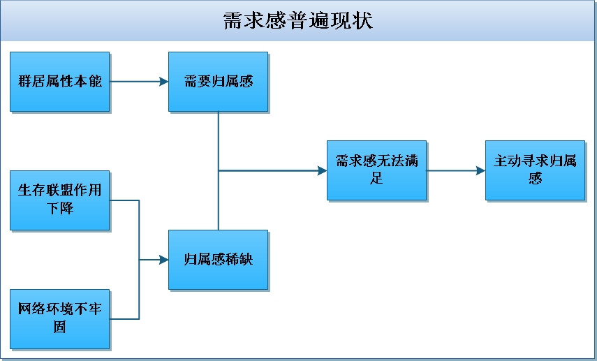 群居是人类为了弥补个体能力不足、提高生存几率,而衍化出的一种生存模式。而归属感,是人类为了坚持贯彻群居,而产生的本能。