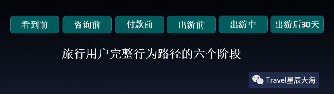看到前-咨询前-付款前-出游前-出游中-出游后30天这六个阶段,不同的阶段对应着不同的用户心理特征和旅游企业的服务重点:
