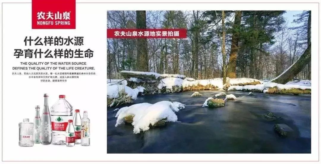 并且农夫山泉 “什么样的水源地孕育什么样的生命” 系列的广告,虽然是品牌形象操作,但是也符合其自身的定位。这个广告放在怡宝身上就不适合,因为她是纯净水。