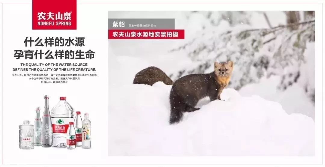请来国际大牌导演,在水源地拍摄纪录片,赚足了眼球的同时提升了品牌形象,回应了质疑。纪录片出炉之后,顺势推出了新的形象广告:什么样的水源,孕育什么样的生命。