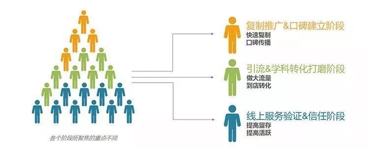 新东方曾组建区域团队,专攻线下推广语数英三科的50元班,当年在北京就取得50000人次的突破;高思曾结合分校扩张战略,以0元班切入新校区,一个校区只开一个500人群,帮助新分校实现冷启动。