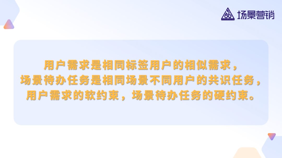 用户需求是软约束,随场景变化而改变。场景待办任务则是消费的硬约束。
