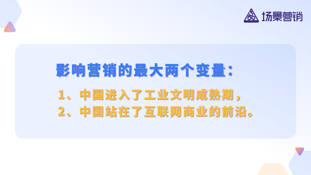 场景营销是与互联网时代匹配的营销体系。我们进入了一个是全新的时代,一定会诞生新的营销理论。虽然新营销理论不一定是场景营销,但我目前个人的判断应该是。