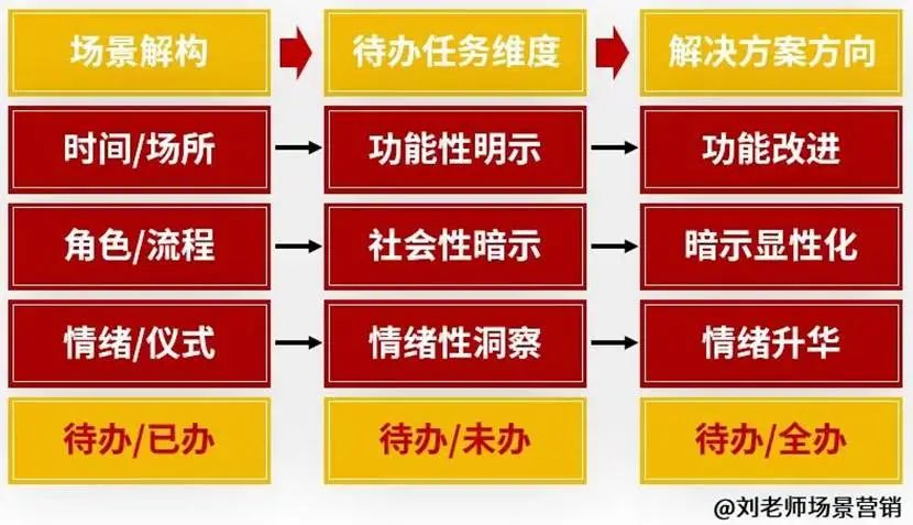 场景导向的产品逻辑是:场景→待办任务→产品。