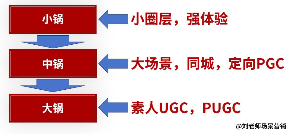 2、烧中锅。中锅,可以是人数较多的大场景,可以是一个区域,是门槛较小锅高的运营单元,需要更大的传播门槛。