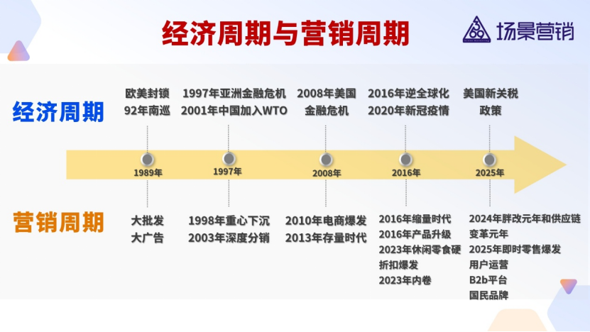下面有张图,是我对改革开放以来营销周期与经济周期相关性的汇总。我们要高度关注经济周期的变化。