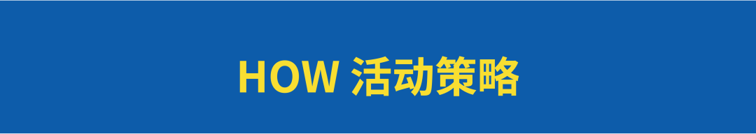 How 活动策略 :相比于内容,以活动为载体的营销传播行为,则显得更加立体、更有记忆度和体感;活动策略最重要的原则,就是以品牌的目标为思考源点,策划能够以较低成本、较少资源顺利完成目标的活动形式。