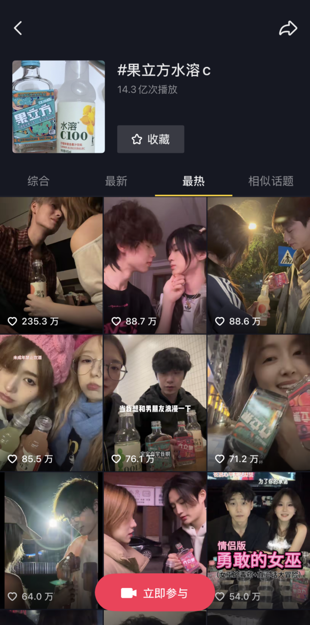 这一瓶子玩法,也通过限定版包装、明星联动、线下快闪与打卡、线上活题和整活等形式,创造了很多内容话题和用户真实互动,给人们提供了社交货币和情绪共鸣,因而衍生了大量UGC。