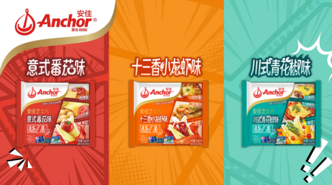 基于此,安佳首先推出了三款创新产品:经典意式番茄味芝士片、鲜香浓郁十三香小龙虾味芝士片、麻辣鲜香川式青花椒味芝士片。用这三款产品对接场景,把芝士片变成小龙虾、火鸡面的灵魂搭配。