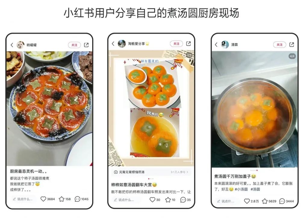在消费仪式上,思念有很多内容是关于用汤圆DIY新春甜品的方法。另外,由于很多年轻人不会煮汤圆,把汤圆煮爆的、煮成贝果的、蒸成柿饼的比比皆是,所以思念又顺势发起#这玩意儿到底谁煮成功了#的共创话题,鼓励消费者分享柿子汤圆的厨房笔记,并推广柿子汤圆的煮法大全等。