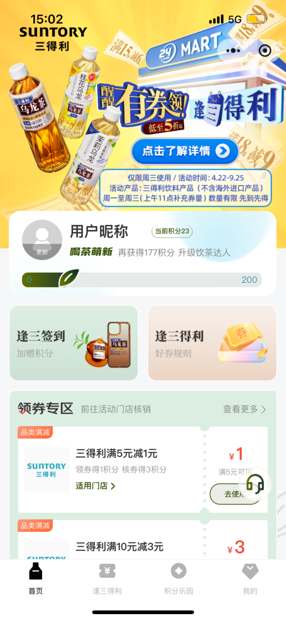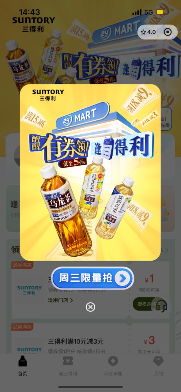 就像三得利的代言人官宣、IP合作主要在微博、B站传播,而“逢三得利”则邀请消费者上微信、美团小程序领券下单,并在新力有家等线下便利店的私域群中进行传播。