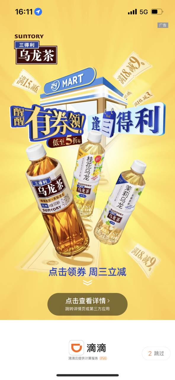 在销售转化内容上,三得利则有大名鼎鼎的“逢三得利”,这是一个每周三推出专属优惠的促销活动,覆盖线上线下各种渠道。但三得利把它变成了一个周期性的活动品牌,把“周三囤水日”变成了固定消费节点,强化了消费者的习惯。三得利还专门为“逢三得利”投放了很多广告,强化用户记忆。