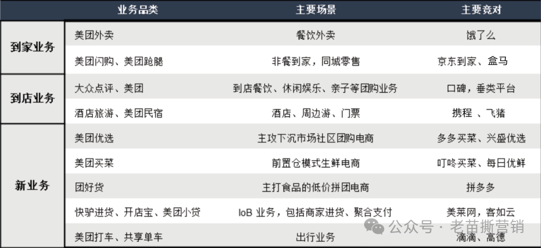 美团也因此成为“最没朋友”的公司,一大半的平台型互联网公司跟美团是竞争对手,包括但不限于阿里、京东、拼多多、携程、滴滴、58同城、叮咚买菜、叮当买药等等等等。