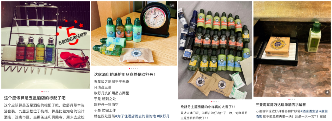 酒店渠道就更厉害了,可以这样说,我最早在五星级酒店里看到的“高端”洗护用品,就是欧舒丹了,而且,这些年随着住过的酒店数量越来越多,我越发现欧舒丹的酒店渠道布局能力超强,直到今天,很多消费者仍然将这个酒店“配的是欧舒丹”当作认证酒店品质的一个重要依据,足见欧舒丹在早期和重要的五星级酒店“联名”上,积累了多好的品牌资产。