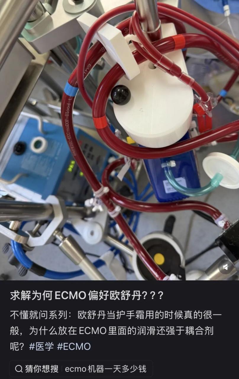 这,是医疗中的高端“奢侈品”——ECMO,是一款维护人体体外呼吸与循环的救命医学设备,据说每开一次机就要10万块,每天的维护费用也要1-3万。它里面用的润滑剂,竟然都是欧舒丹!!!据说厂家的原配就是欧舒丹,每台新机器都配一支,用来当作耦合剂使用。相比这个医疗过程的花费,欧舒丹在这里竟然担当高端医疗耗材平替我也是醉了。你就说,这种拓展特殊渠道的能力强不强?