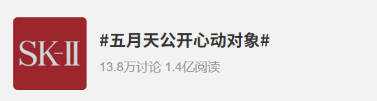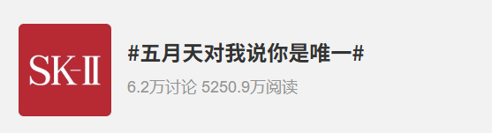 SK-II与五月天的合作也是在5月份官宣,二者联合推出了五月天定制款神仙水,将五月天亲手书写的“你是唯一”印在瓶身上,然后在微博上打造了#五月天公开心动对象#、#五月天对我说你是唯一#等话题。
