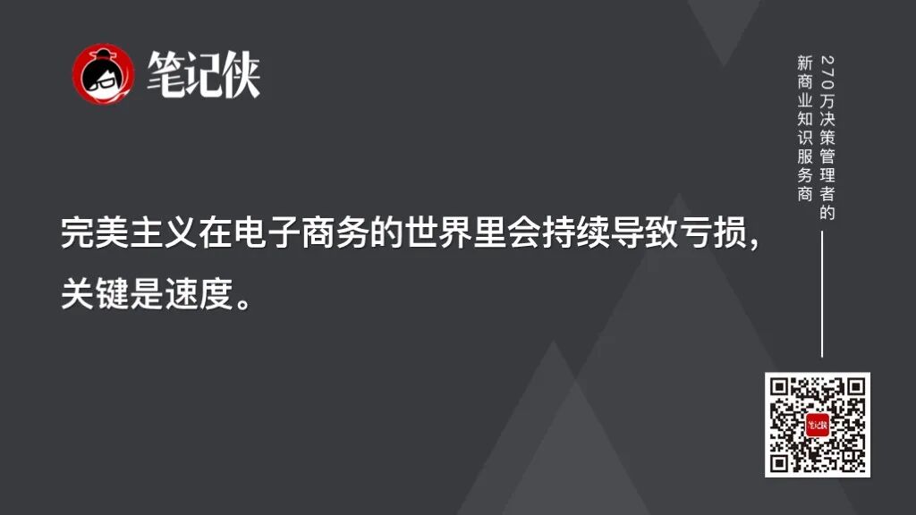 贝佐斯认为,完美主义在电子商务的世界里会持续导致亏损,关键是速度。