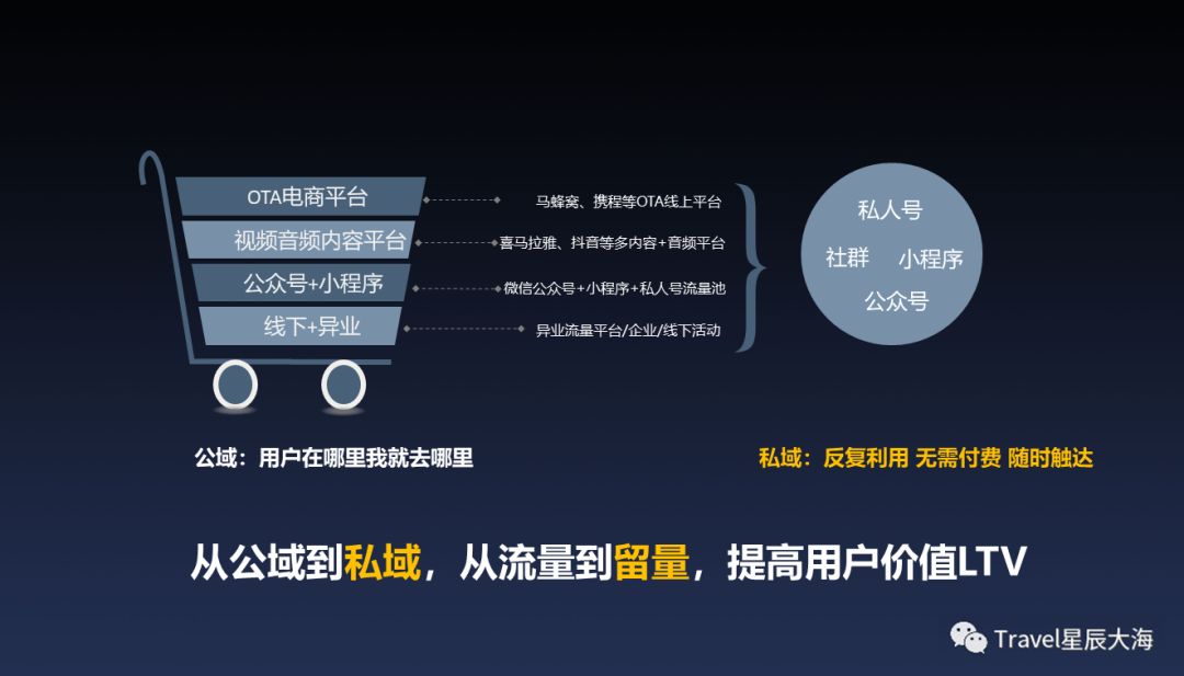 它的特点是可以反复利用,无需付费,又能随时触达,相对于头条,抖音、喜马拉雅等自媒体渠道的流量以及淘宝、京东、百度、携程、马蜂窝这些公域流量平台,它属于商家的“私有资产”。