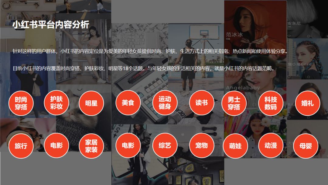 另外,针对这样的用户群体,小红书官方的定位就是为爱美的年轻女孩提供时尚、护肤、生活方式上的相关指南、热点新闻和使用体验分享。目前小红书的内容覆盖时尚穿搭、护肤彩妆、运动健身、美食、旅行、明星等18个热门话题,都是与年轻女孩的生活息息相关。