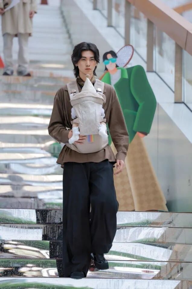 以母婴品牌BeBeBus为例,一场别开生面大小秀,一反妈妈=育儿的刻板印象,由8位时髦“奶爸型”模特演绎“带娃出行大秀”:时尚感的穿搭,实用且兼具高颜值的蝴蝶遛娃MAX、气垫腰凳在秀场中自然呈现,由此“母婴产品”不再仅仅是“实用工具”,而是“时尚育儿生活的一部分”。