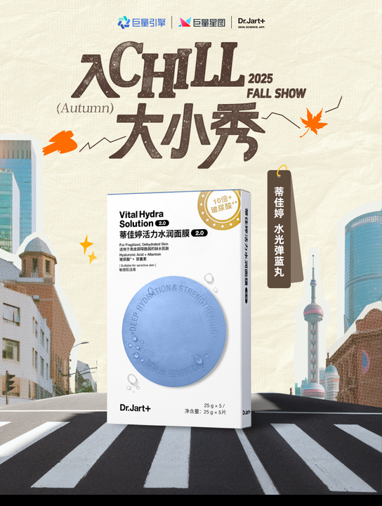 再看美妆品牌Dr.Jart+。通过「入Chill大小秀」的异业联动,将“秋日护肤”“咖啡休闲”场景结合,实现品牌声量与人群资产的双重提升。