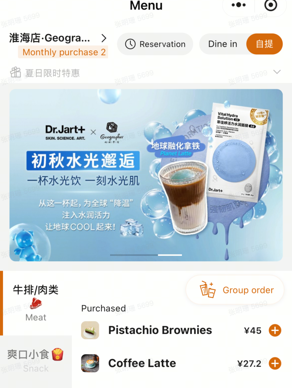 通过联合地理学家咖啡打造“初秋水光邂逅”快闪店,推出「初秋水光邂逅」面膜x地球融化拿铁主题套餐,让 “一杯水光饮,一刻水光肌”成为标配,将护肤从“居家场景”延伸至“社交场景”。