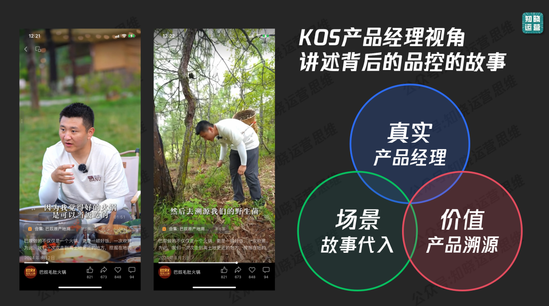 同样巴奴火锅,他们在私域和短视频内容建设上,输出KOS产品经理视角下的品控故事,构建出真实、场景、价值的内容,