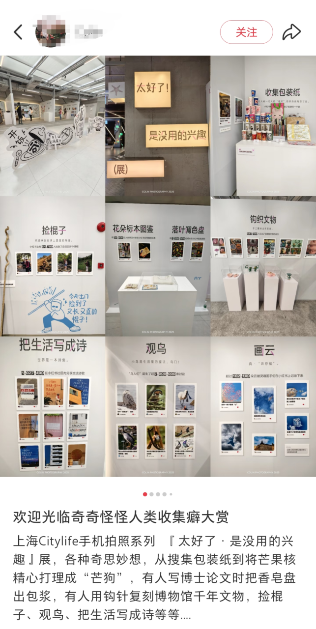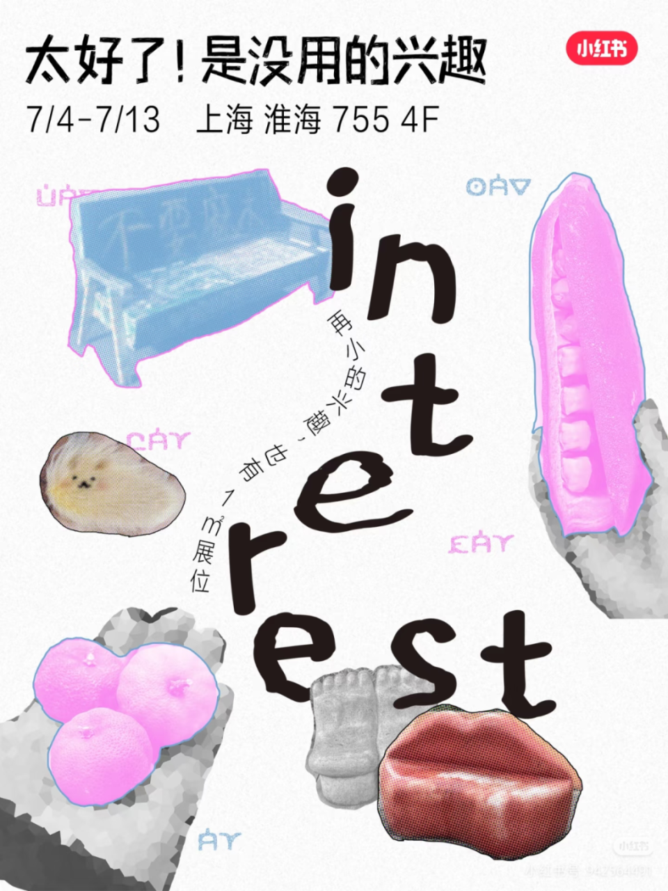 今年7月,小红书升级了自己的slogan,从“你的生活指南”变成了“你的生活兴趣社区”,品牌也基于很多兴趣搞了线下展,但是最抽象的,还属“太好了,是没用的兴趣”展。