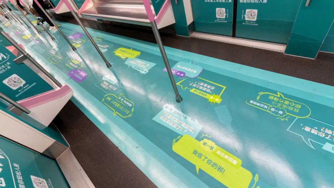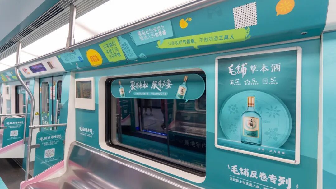 比如,毛铺在武汉地铁2号线打造的“反卷专列”,就是一次对当下社会情绪的精准回应。它没有说教,而是用一整节车厢的“反内卷”社交公约,以恰到好处的幽默和反差,成为年轻人“拒绝劝酒”理想嘴替。