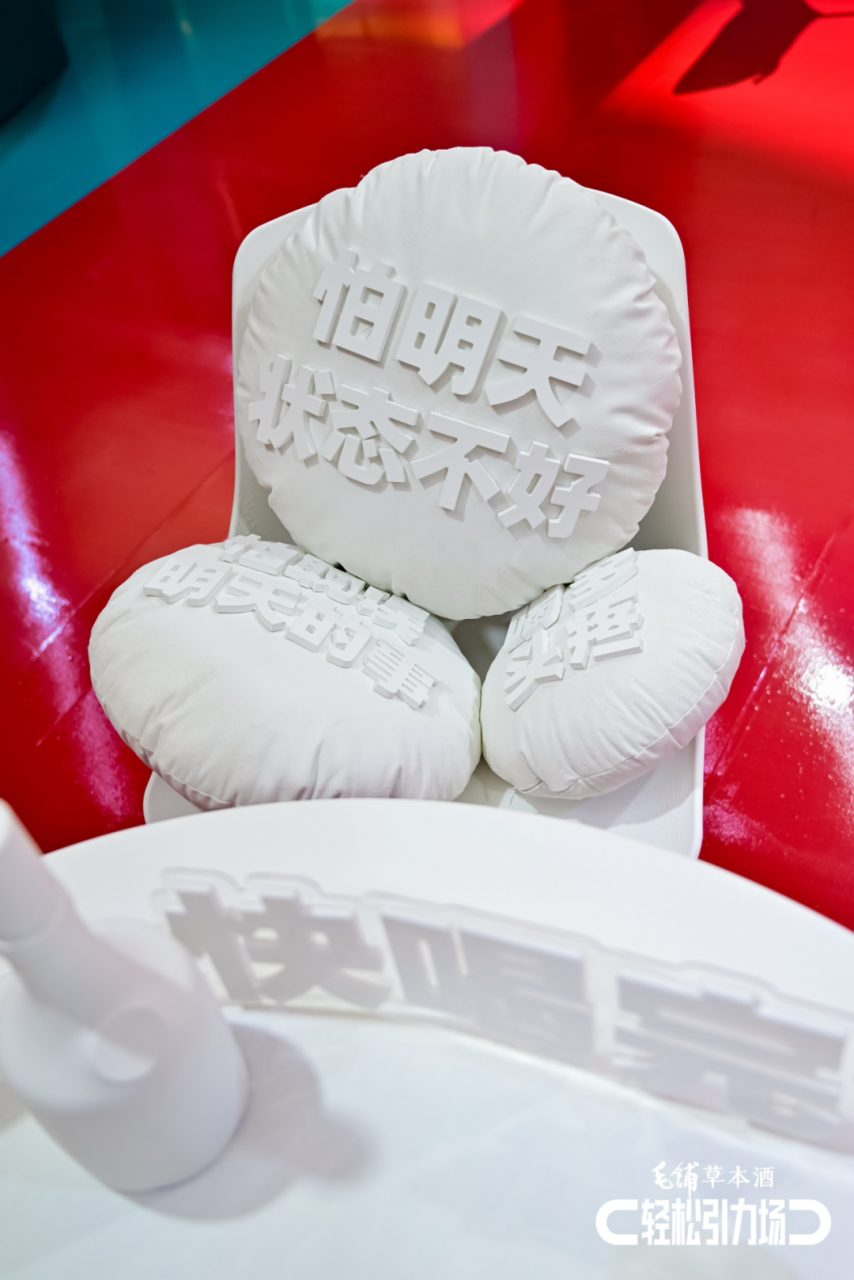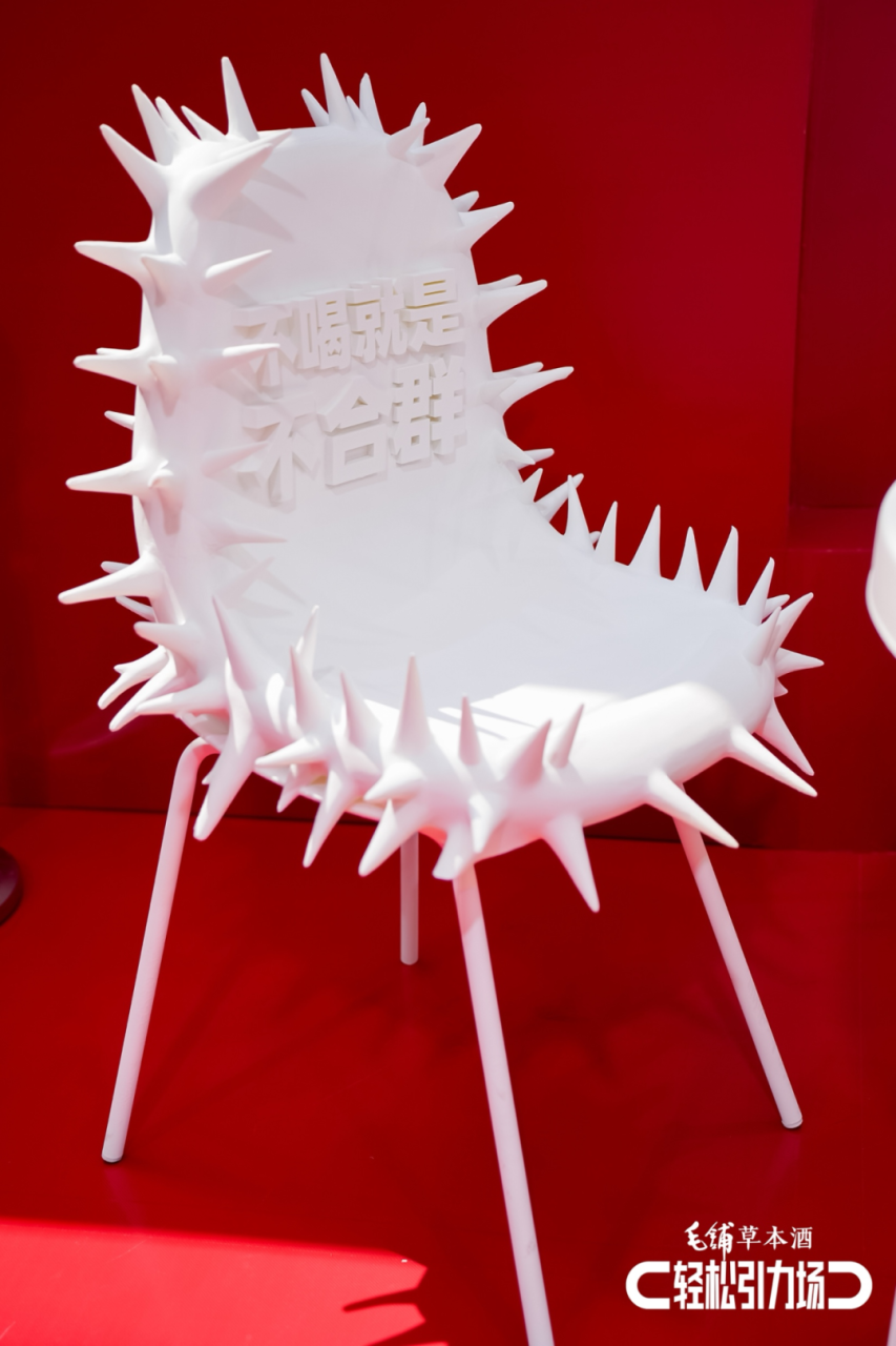 红色区域是在“解构酒局”,通过艺术装置将那些熟悉又令人不适的酒桌场景具象化,解构了长期存在却被不断忍耐的酒桌压力。让消费者了解到,原来并不是自己不合群,而是这个“局”本身就值得被质疑。