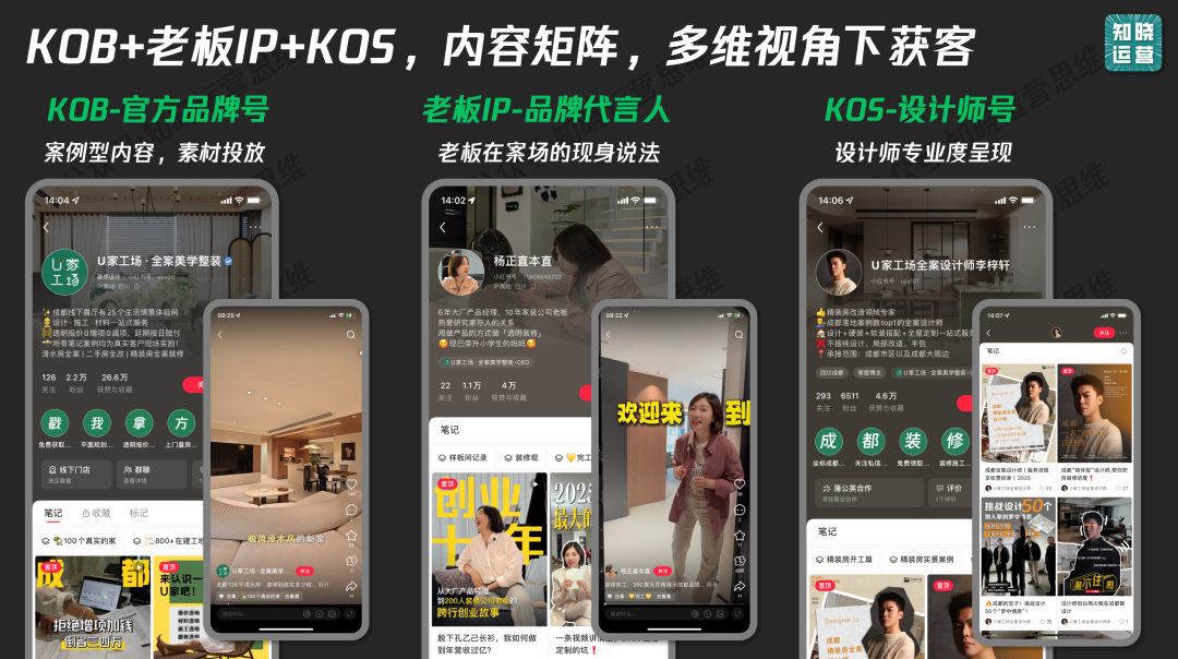 因为从客户找装修时,会关注不同的视角,所以在账号矩阵搭建一定是多视角: