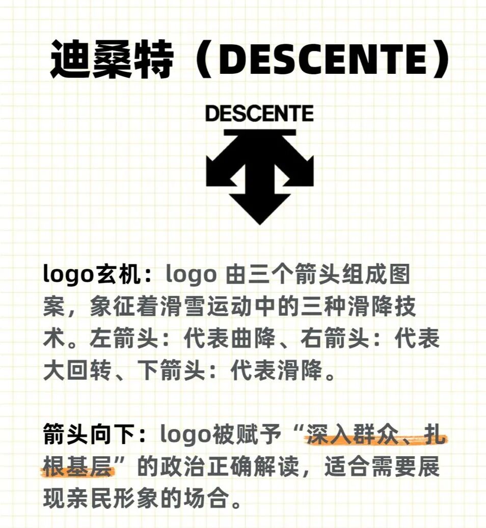 迪桑特“三箭头朝下”的Logo在东北有一个广泛解读叫“深入群众、扎根基层”。
