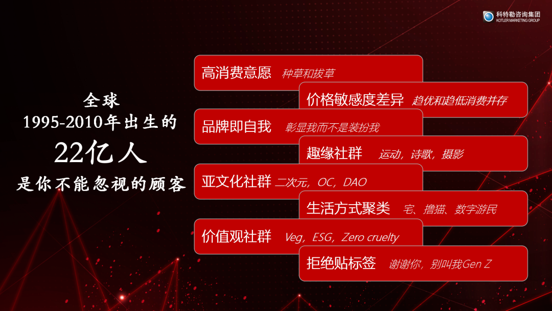 当前,有一个对众多品牌极具影响力的世代——Z世代(Generation Z),指出生于1995至2010年间的人群。尽管他们跨越不同肤色、文化、宗教与民族,却共享某些共同特质。他们非常年轻,2010年出生的人现在才十五六岁,1995年出生的也刚三十岁左右。他们的特点是具有高消费意愿,全球约有22亿人。