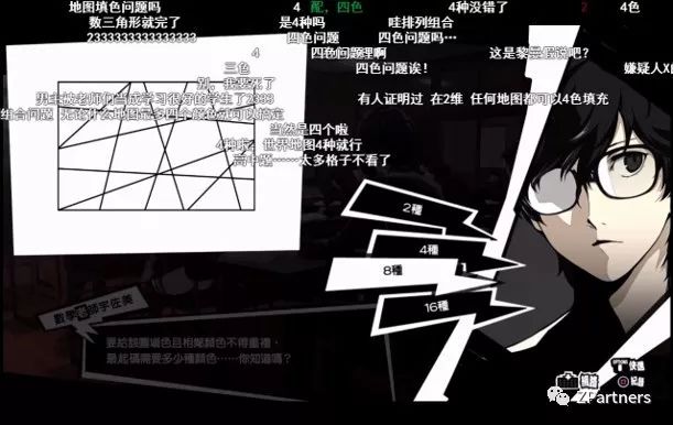 (《女神异闻录5》中关于四色原理的弹幕讨论)
