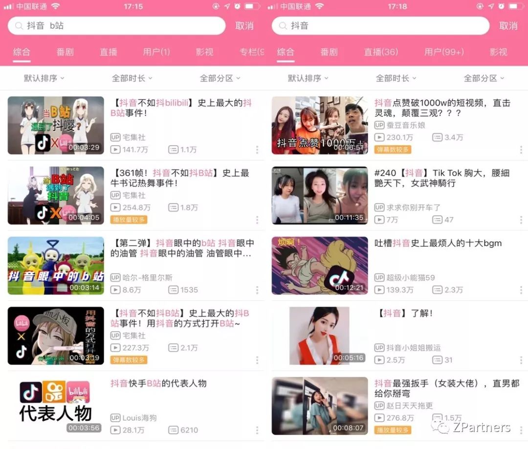 B站的用户又是挑剔的。大众的、现实的内容很难吸引他们的注意力。当我们在B站搜索“抖音 B站”这两个关键词时,出现大量“抖音不如抖B站”的视频剪辑,二次元的小妹妹和抖音上的小姐姐一样,配着耳熟能详的歌曲跳着宅舞。