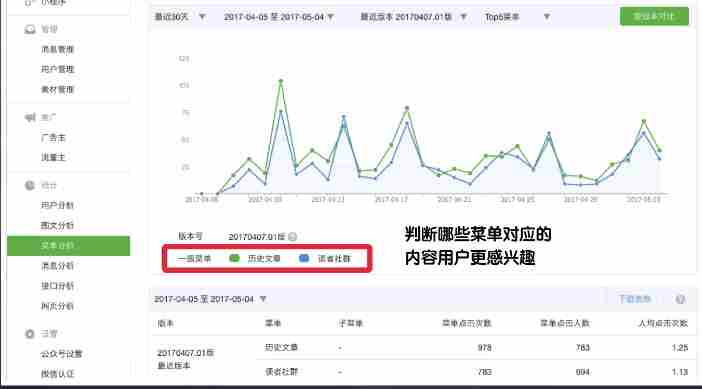 通过这个数据,可以判断哪些菜单对应的内容用户更感兴趣。