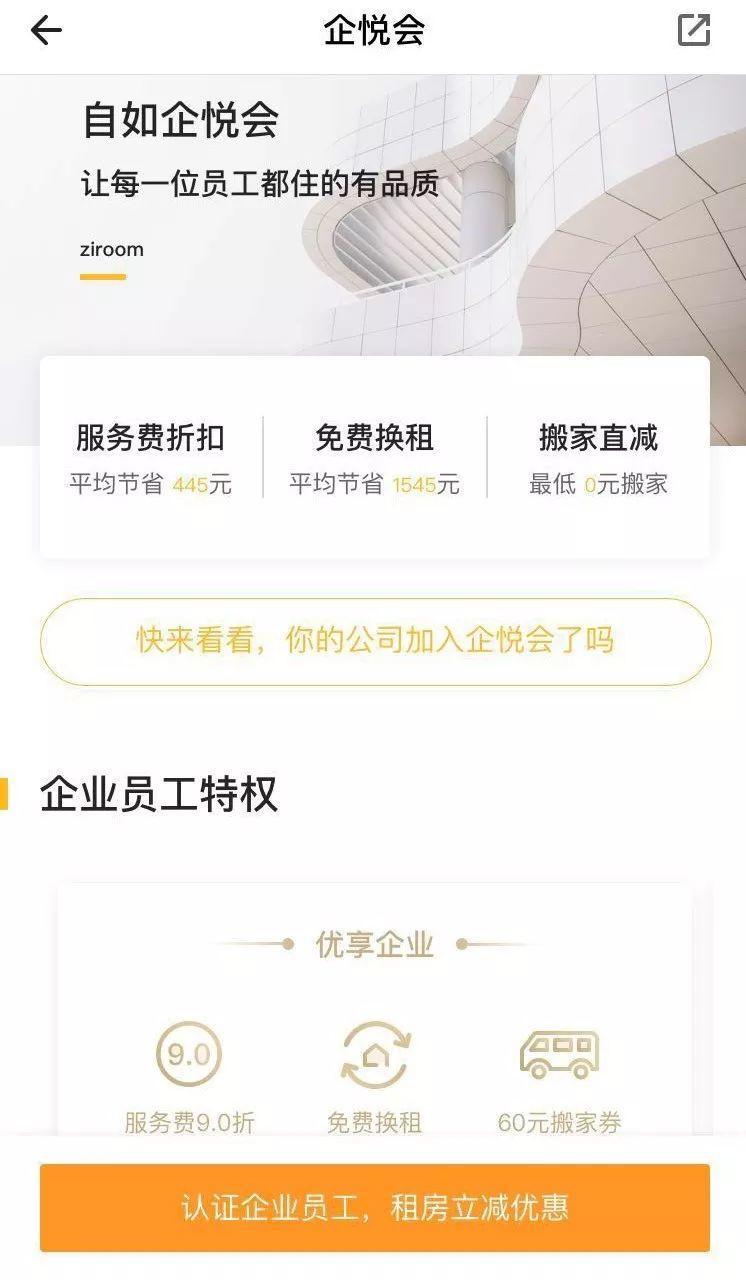 企业租房产品是由企业开通,员工可激活权限,入住后可享“服务费折扣”、“免费保洁”、“专属客户经理”等优惠。