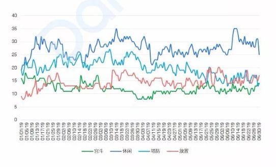 上半年,投放过MMORPG玩法的手游厂商平均数量在150家以上,投放过策略玩法的手游厂商平均数量在100家左右,卡牌游戏厂商近段时间投放力度略有加大。